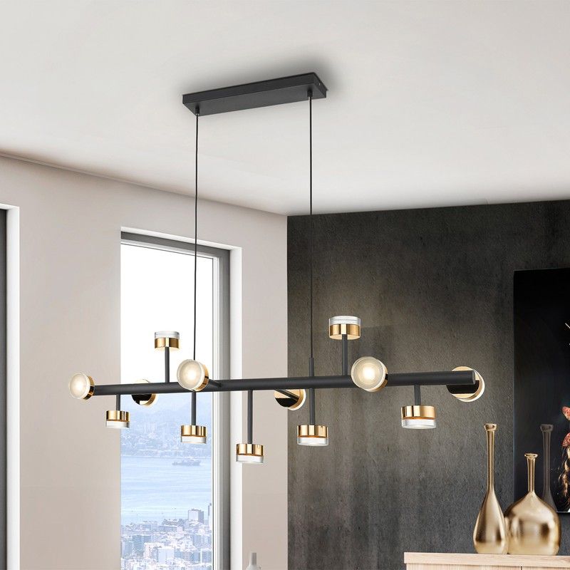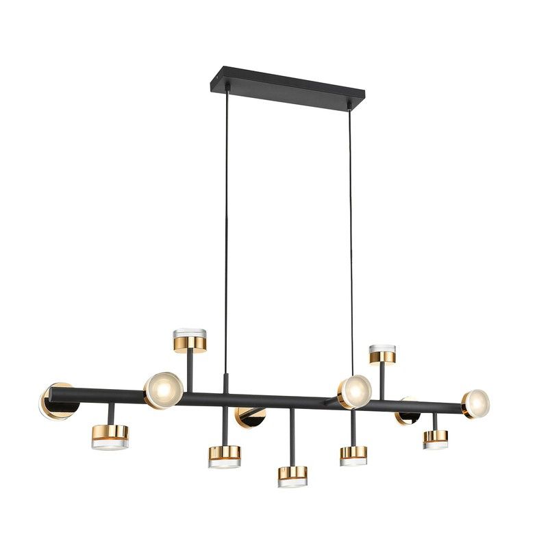 Lámpara de techo ALTAIS II negra y oro de altura regulable, 117x42x37 cm