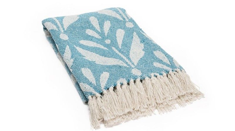 Para las noches de verano en las que comience a refrescar ten a mano una manta ligera con motivos decorativos en tono azul para seguir en la línea.