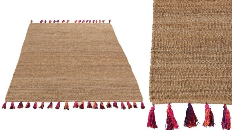 Cuando hayas elegido tus muebles de jardín solo te quedará decorar los rincones con detalles de fibras naturales. Coloca una alfombra en tu zona de lectura, apuesta por este modelo de yute con borlas que aportan un toque de color.