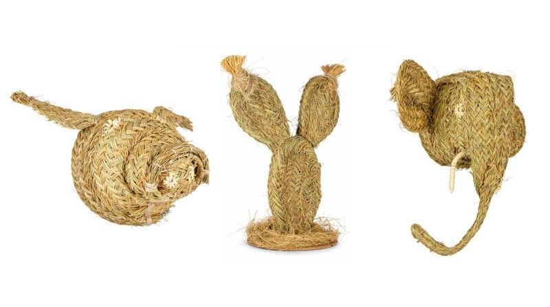 A la hora de decorar tus paredes para sentirte en un ambiente muy veraniego podrás elegir las originales figuras de animales fabricadas con esparto, un elefante, un cerdo o pequeños cactus para colocar sobre el suelo o un mueble.