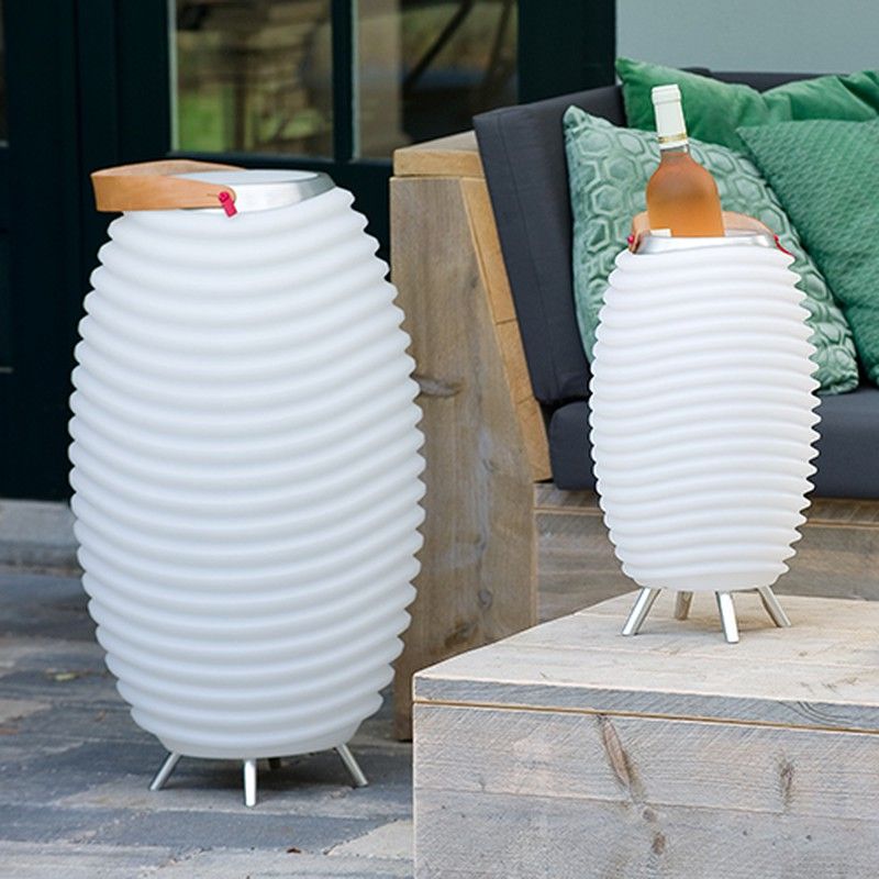 Estás lámparas cuentan con todo lo necesario para crear los ambientes que necesitamos en cada momento. Cuentan con un altavoz integrado, luz y un hueco reservado para poder utilizar como botellero o macetero. De esta forma estamos consiguiendo que con un solo accesorio tengamos la luz ambiental, nuestra música favorita, una bebida fría en un mismo lugar o un moderno macetero. Desde Qechic te animamos a que descubras todos los detalles de esta innovadora lámpara Kooduu.