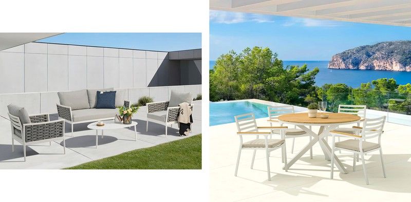 Y si prefieres el máximo relax, un conjunto de salón para exterior compuestos por sofás, sillones y mesa de centro, es el mejor aliado.