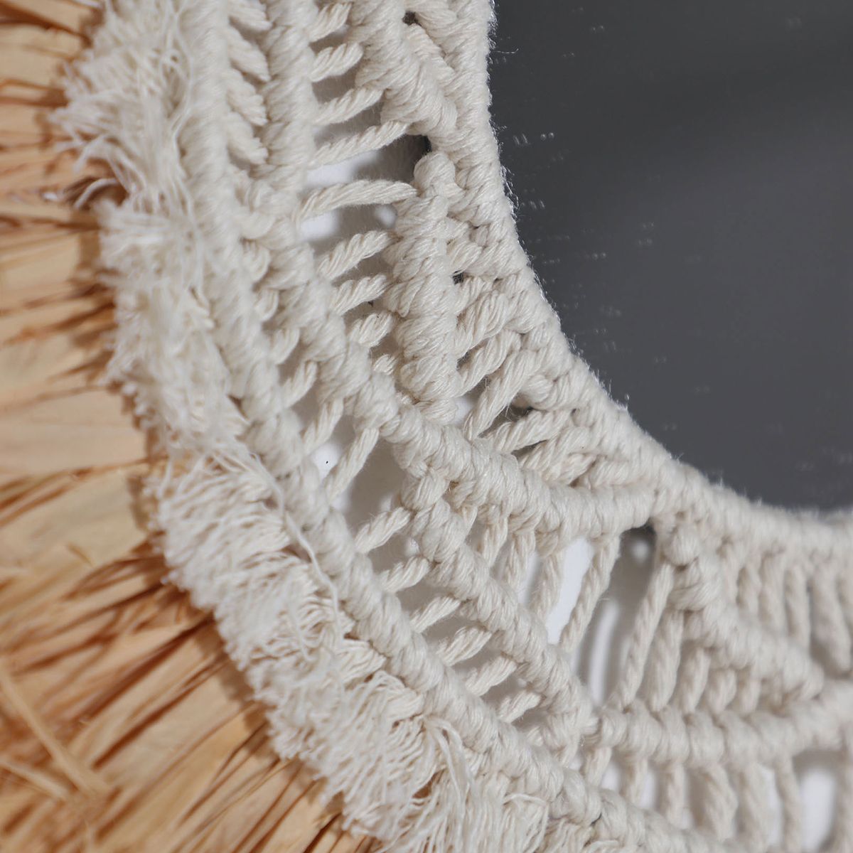 Espejo de rafia en marrón, 43 x 1 x 43 cm | Kasses