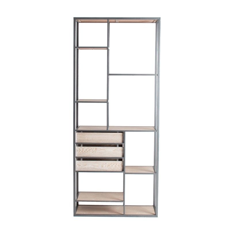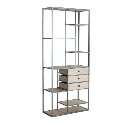 Estantería de madera y hierro. Está fabricada con un estilo vintage con una estructura de hierro negro, 7 baldas de madera de abeto de diferentes tamaños y 3 cajones. Es una pieza con la que además de decorar conseguirás el espacio que necesitas para tu hogar. Además gracias a su tamaño podrás colocarla en el salón, despacho, pasillo o dormitorio. Aportarás un toque muy decorativo y atractivo a la estancia. Sus materiales y acabados de calidad aportarán el diseño y la exclusividad que buscas para tu hogar. ¡Apuesta por esta original estantería y conquista a tus invitados!