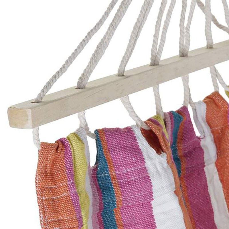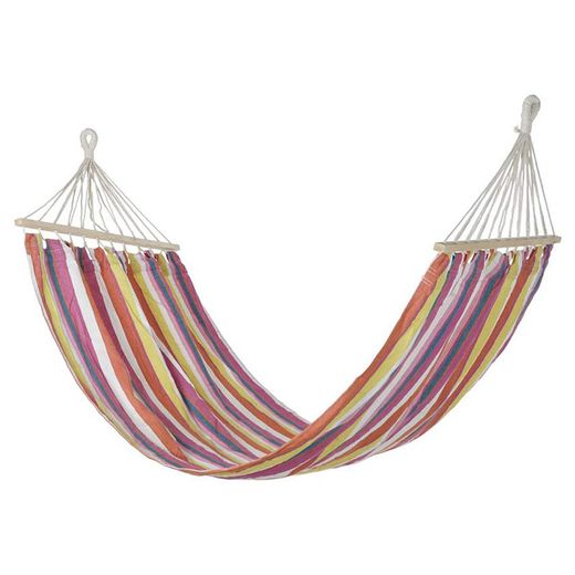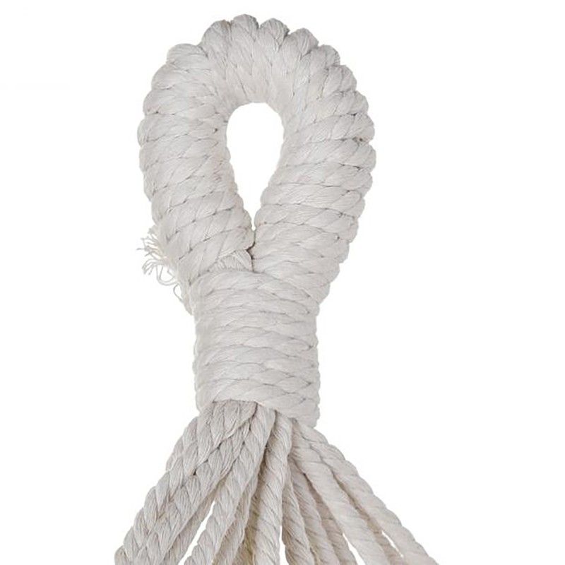 Esta hamaca es un oasis de confort y estilo, diseñada para evocar sensaciones de relajación y alegría.Ideal para quienes buscan un toque bohemio y moderno en sus espacios exteriores o interiores. Debes anclar esta hamaca colgante de terraza en 2 pósteres o árboles que sean resistentes para mantener de forma segura su estructura. Incorpora en sus extremos dos anclajes de madera natural.