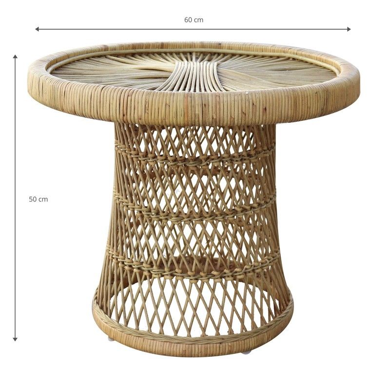 Mesa Auxiliar de Jardín Redonda de Ratán Natural, 60x50 cm