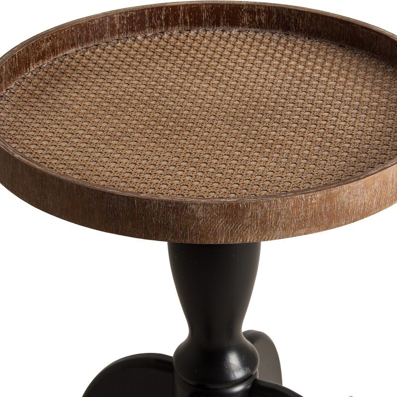 Mesa auxiliar de madera de abeto, DM y ratán. Cuentan con una estructura de madera negra con un pie elegante y una base redonda con ratán en su interior. Puedes colocarla en cualquier rincón del salón, despacho o sala de estar. Cuenta con acabados curvados con base amplia. Podrás introducirla en espacios industriales, clásicos o coloniales. En su amplia superficie podrás colocar un punto de luz, velas, marcos o usarlas como mesas para tomar tus snacks. ¡Apuesta por una mesa auxiliar con estilo para transformar tu hogar!