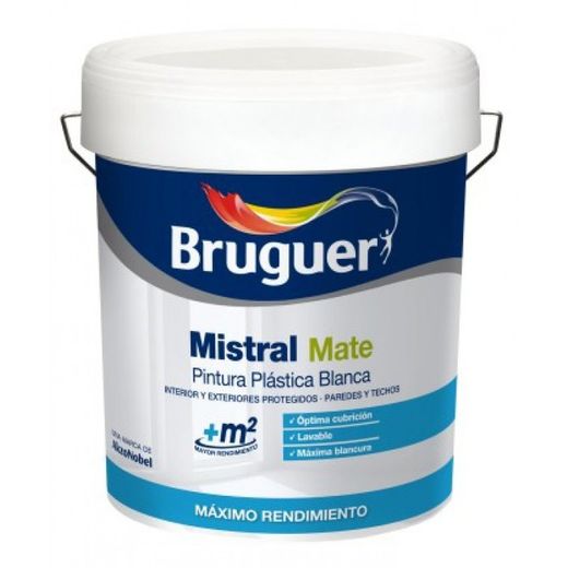 La pintura plástica de Bruguer Mistral Mate es apta tanto para exterior como para interior gracias a su gran resistencia a la intemperie. Esta pintura cuenta con una gran cobertura de alto rendimiento es lavable y ofrece un color blanco absoluto. Especialmente indicada para paredes y techos interiores. Para la protección y decoración de superficies de yeso, cemento, paneles de cartón yeso y albañilería en general. Su uso está indicado en paredes y techos.