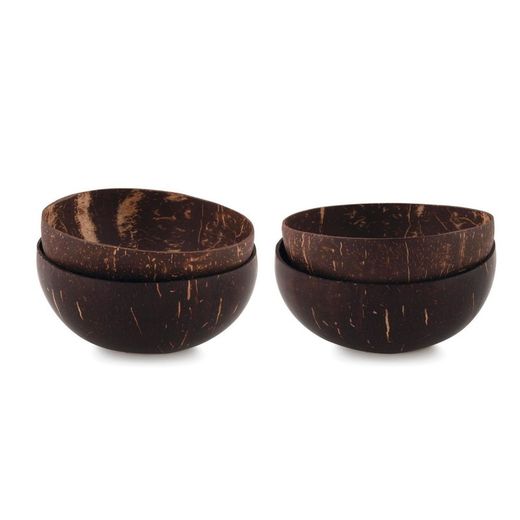 Set de 4 boles de coco para conseguir los emplatados más originales para tus recetas. Están fabricados con la cáscara de coco natural en un tono oscuro. Una solución diferente y con mucho estilo para sorprender a tus invitados. Podrás usarlos para cremas, sopas, yogures con frutas y cereales o lo que desees. El coco es un material sostenible por lo que además de tener los cuencos más divertidos, evitarás el uso de otros materiales nocivos para el medio ambiente. ¡Apuesta por este set para sorprender a tus comensales en la mesa con tus mejores creaciones culinarias!
