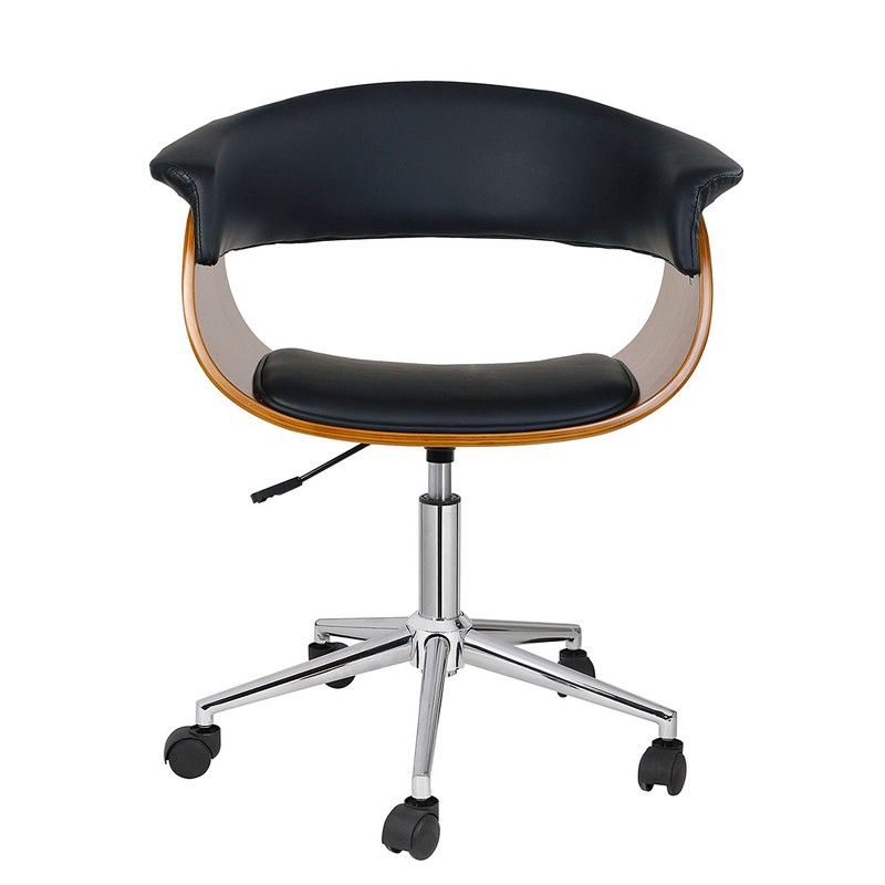Silla de oficina de madera nogal y similpiel negra, 68 x 56 x 74 /86 cm