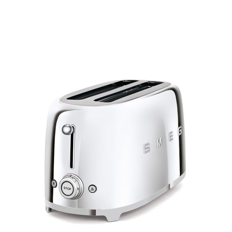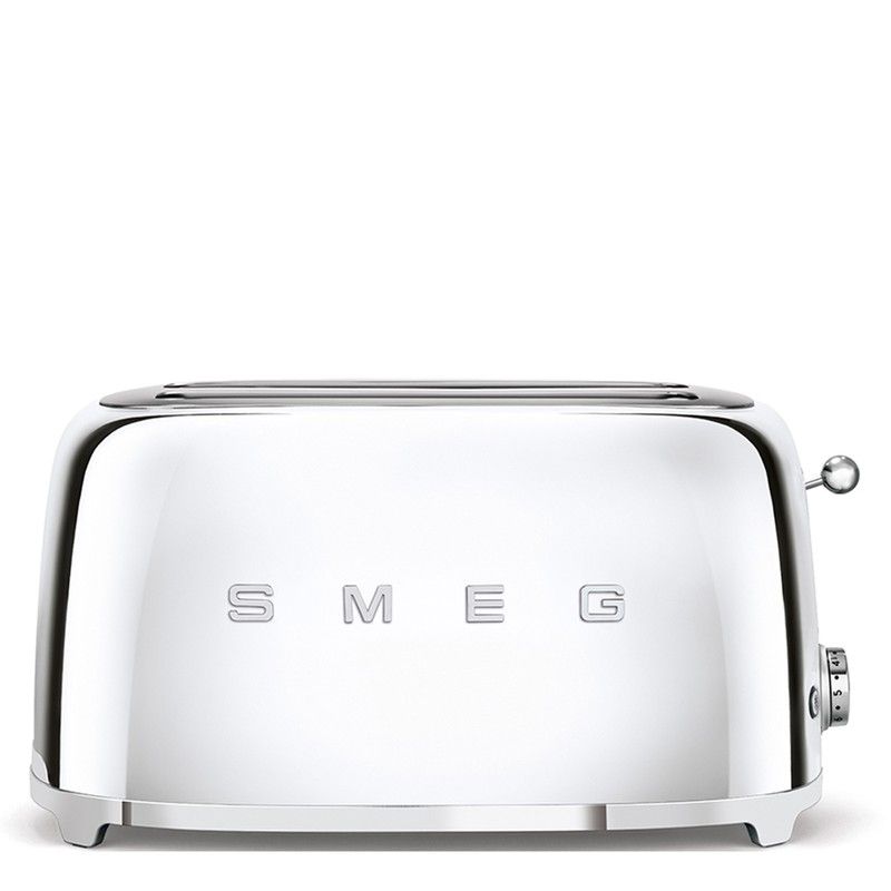 Tostador Smeg cromado indicado para cuatro rebanadas con amplios compartimentos para cualquier medida de pan. Diseño y funcionalidad se unen en este pequeño electrodoméstico para hacer de tus desayunos un placer. Su estética está inspirada en los años 50 para aportar en tu cocina un toque vintage. Calienta, descongela o prepara las tostadas más deliciosas con este exclusivo tostador.