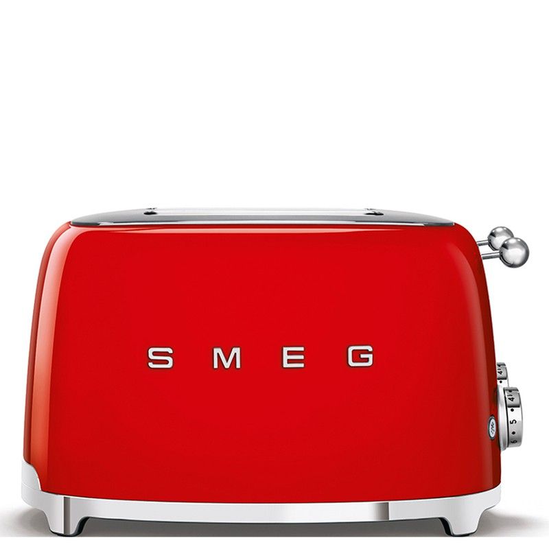 Tostador Smeg color rojo indicado para cuatro rebanadas con 4 ranuras.Cuenta con dos paneles de manos independientes y dos levas de activación de ciclo y expulsión automática al final del tostado. Tiene dos bandejas recoge midas de acero inoxidable extraíbles para limpiarlas. Diseño y funcionalidad se unen en este pequeño electrodoméstico para hacer de tus desayunos un placer. Su estética está inspirada en los años 50 para aportar en tu cocina un toque vintage. Calienta, descongela o prepara las tostadas más deliciosas con este exclusivo tostador.