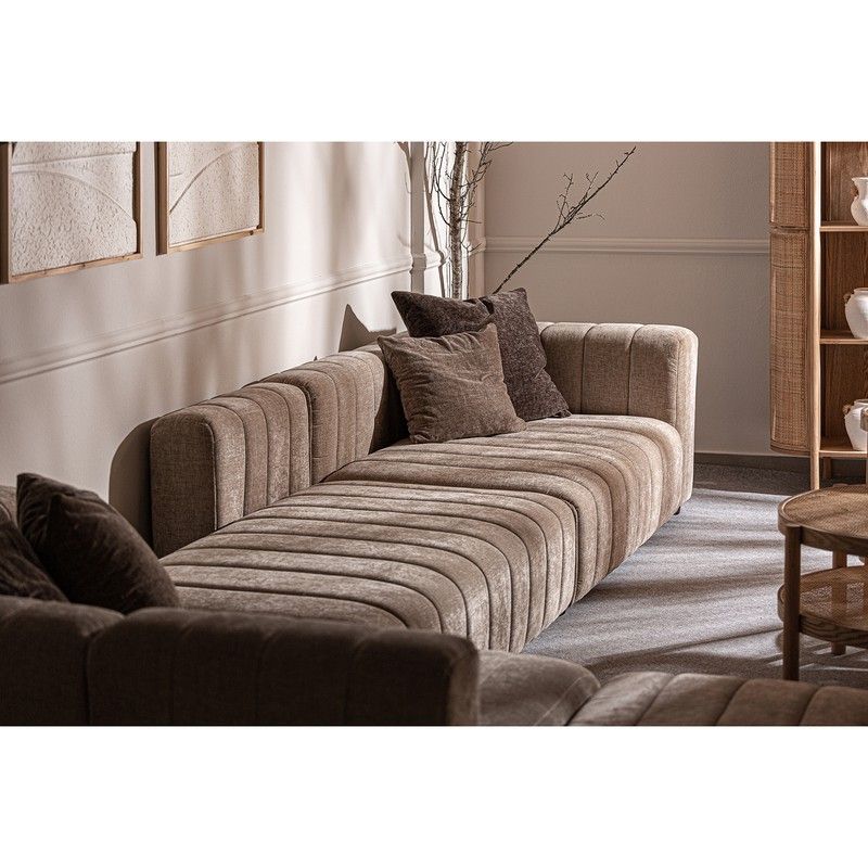 Sumérgete en la elegancia y el confort supremo de nuestro sofá modular, diseñado para elevar tu espacio vital a nuevas alturas de sofisticación. Confeccionado con exquisito terciopelo beige, este sofá no solo es una obra maestra de diseño, sino también una invitación irresistible a la relajación. La suavidad y la calidez del terciopelo añaden un toque de opulencia a cualquier ambiente, mientras que su tono beige suavemente neutral complementa una amplia gama de estilos de decoración. ¡Haz una declaración de elegancia y confort en tu hogar!