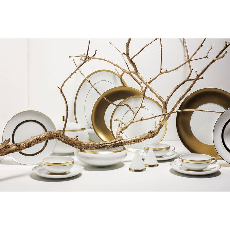 Taza Consomé c/ Platillo porcelana Domo Gold, Ø19,1x5 cm